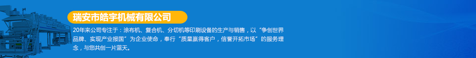 瑞安市皓宇機(jī)械有限公司是瑞安一家私營責(zé)任有限公司,注冊(cè)資金200萬,員工40余人,是具有獨(dú)立法人地位,專業(yè)生產(chǎn)定做各種非標(biāo)準(zhǔn)涂布機(jī)、復(fù)合機(jī)、印刷機(jī)、分切機(jī)、壓膜機(jī)等機(jī)械設(shè)備的制造廠。公司的機(jī)器主要用于生產(chǎn)保護(hù)膜、膠帶、雙面膠、不干膠、相紙、油畫布、汽車防爆膜、熱轉(zhuǎn)印、燙金膜、離型膜、離型紙、軟包裝印刷、軟包裝復(fù)合、軟包裝分切等各種產(chǎn)品... [詳細(xì)]